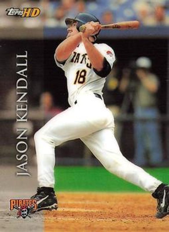 The Jason Kendall 2000 Topps High Definition (HD) #38 Base card is 1 of 2 Jason Kendall's card variations in the 2000 Topps High Definition (HD) set being tracked by Sports Card Investor, including Platinum.