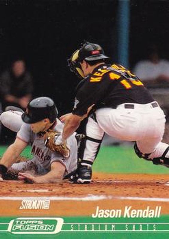 The Jason Kendall 2001 Topps Fusion #100 Base card is 1 of 3 Jason Kendall's card variations in the 2001 Topps Fusion set being tracked by Sports Card Investor, including #101 Base, and #97 Base.