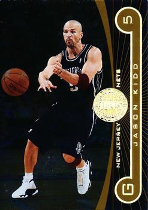 The Jason Kidd 2005 Topps First Row #43 Gold Rainbow /325 card is 1 of 16 Jason Kidd's card variations in the 2005 Topps First Row set being tracked by Sports Card Investor, including Base /549, Black & White /225, Gold /100, Sepia /25, and Signatures Dish /190.