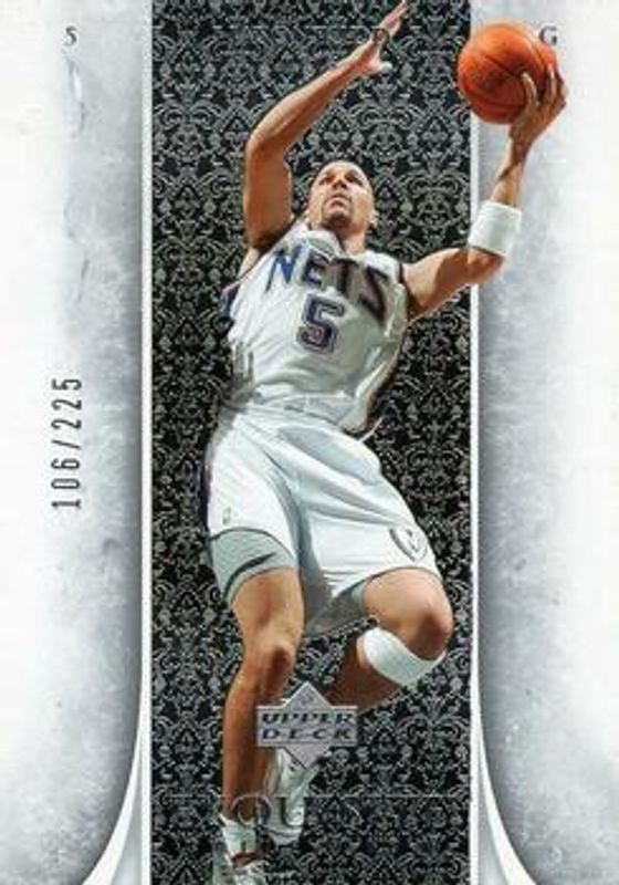 The Jason Kidd 2005 Upper Deck Exquisite Collection #24 Base /225 card is 1 of 11 Jason Kidd's card variations in the 2005 Upper Deck Exquisite Collection set being tracked by Sports Card Investor, including Gold /25, Rainbow /1, Autographs Patches /100, Limited Logos /50, and Enshrinements /25.