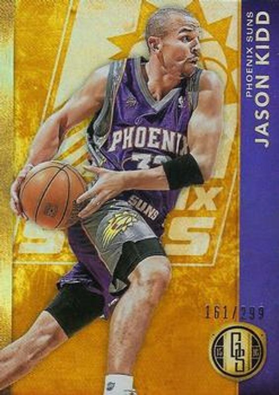 The Jason Kidd 2015 Gold Standard #175 Base /149 card is 1 of 6 Jason Kidd's card variations in the 2015 Gold Standard set being tracked by Sports Card Investor, including AU /79, Black /15, Mother Lode Autographs /99, 14K Autographs /40, and Bullion Brand Logo Tag /1.