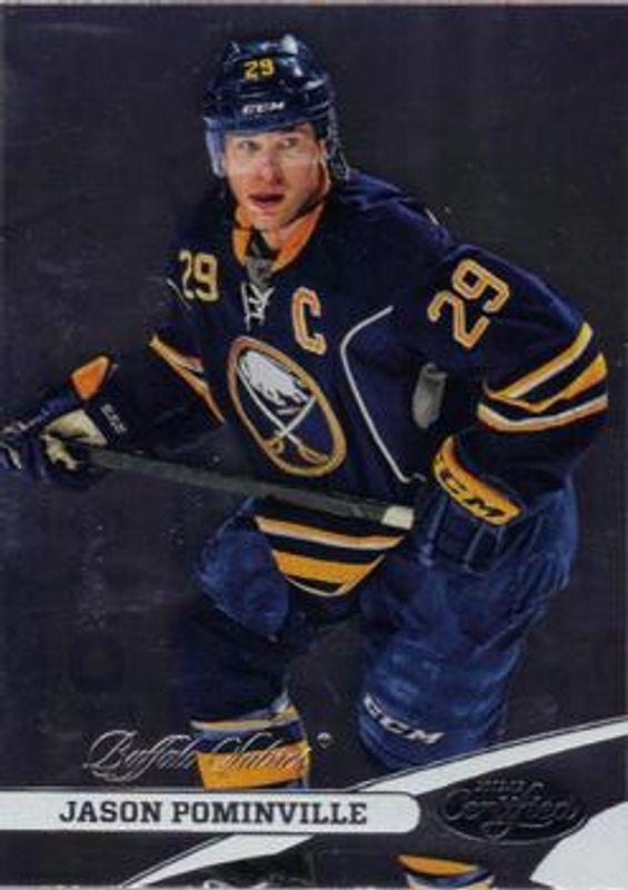The Jason Pominville 2012 Certified #29 Base /999 card is 1 of 14 Jason Pominville's card variations in the 2012 Certified set being tracked by Sports Card Investor, including Mirror Red /100, Mirror Hot Box /75, Mirror Blue /50, Mirror Gold /25, and Mirror Emerald /5.