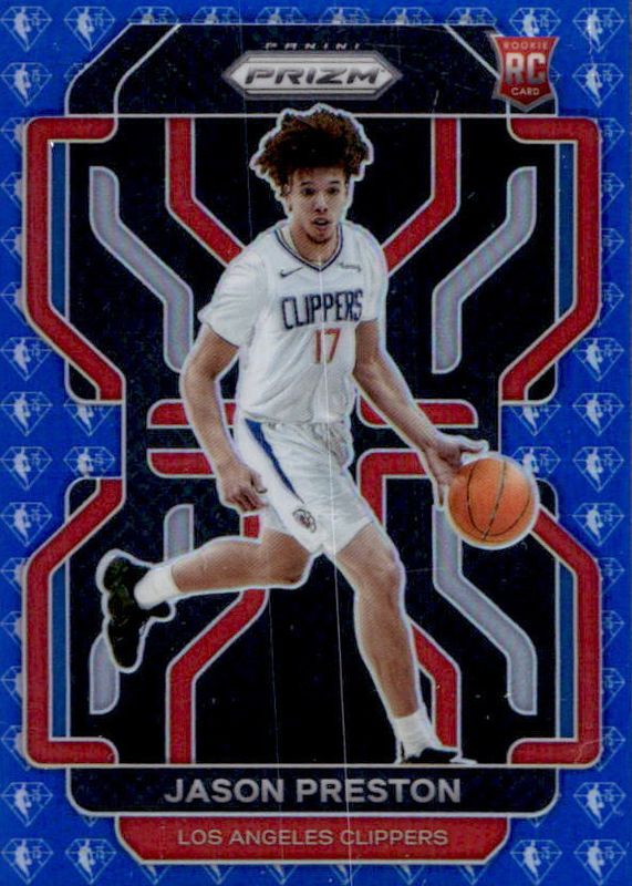 2021-22 Panini Prizm Jason Preston 75th Anniversary Blue Diamond RC/SP Clippers