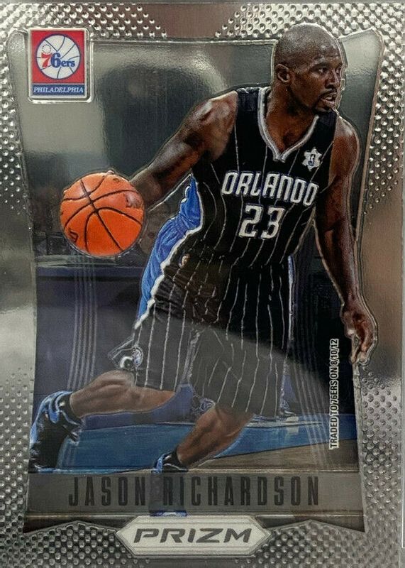 This card is 1 of 4 Jason Richardson's card variations in the 2012 Prizm set being tracked by Sports Card Investor, including Green, Silver, and Gold /10.