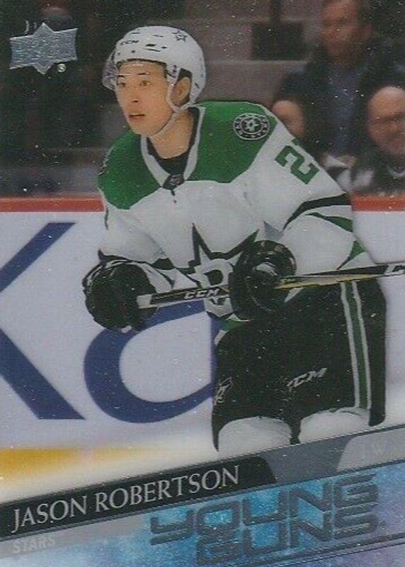 This card is 1 of 10 Jason Robertson's card variations in the 2020 Upper Deck set being tracked by Sports Card Investor, including Young Guns Base, Young Guns Canvas, Young Guns - Clear Cut Exclusives, Young Guns - French, and Young Guns - Jumbo.