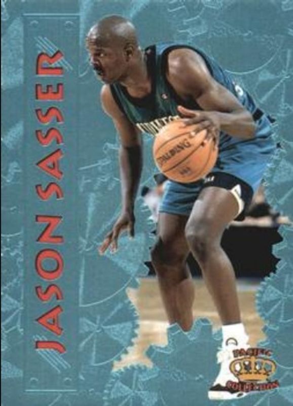 The Jason Sasser 1996 Pacific Power #PP-45 Platinum card is 1 of 4 Jason Sasser's card variations in the 1996 Pacific Power set being tracked by Sports Card Investor, including Base, Silver, and Regents of Roundball.