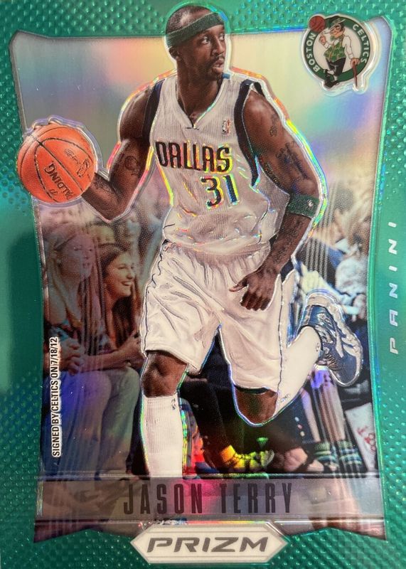 This card is 1 of 8 Jason Terry's card variations in the 2012 Prizm set being tracked by Sports Card Investor, including Base, Silver, Gold /10, Finalists, and Finalists - Green.
