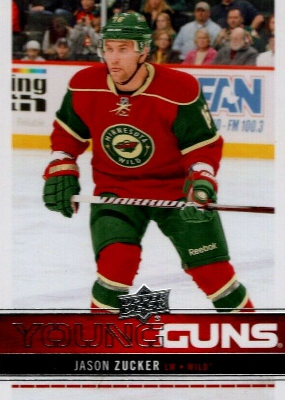 The Jason Zucker 2012 Upper Deck #227 Young Guns Base Rookie card in Raw condition has moved up $7.90 (+219%) in the last 30 days and was last sold for $11.50 .