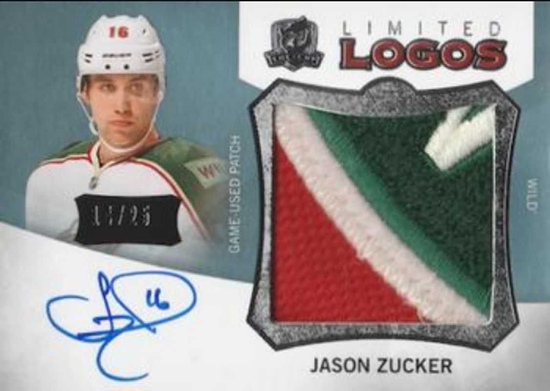 The Jason Zucker 2013 Upper Deck The Cup #LL-JZ 2012 Upper Deck The Cup Update I: Limited Logos Autographs /25 card is 1 of 27 Jason Zucker's card variations in the 2013 Upper Deck The Cup set being tracked by Sports Card Investor, including #ARG-JZ 2012 Upper Deck The Cup Update I: Rookie Gear Autographs /25, #AMRP-JZ 2012 Upper Deck The Cup Update I: Monumental Rookie Patch Autographs /3, #LL-JZ 2012 Upper Deck The Cup Update I /1, #110 2012 Upper Deck The Cup Update I /1, and #AMRP-JZ 2012 Upper Deck The Cup Update I /1.