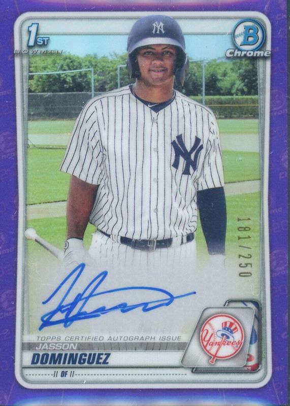 Best Prices Available For Sale of Jasson Dominguez 2020 Bowman #CPA-JDO Chrome Prospect Auto - Purple Refractor /250 (1st)