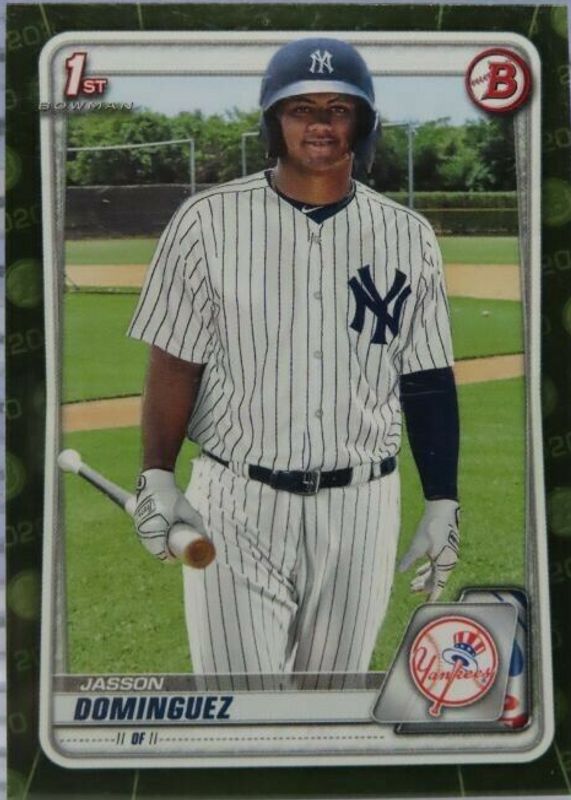 This card is 1 of 47 Jasson Dominguez's card variations in the 2020 Bowman set being tracked by Sports Card Investor, including Paper Prospects (1st), Paper Prospects - Sky Blue /499 (1st), Paper Prospects - Purple /250 (1st), Paper Prospects - Blue /150 (1st), and Paper Prospects - Green /99 (1st).