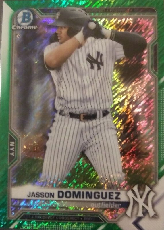 Jasson Dominguez 2021 Bowman Chrome #BCP-213 Prospects - Green Shimmer Refractor /99 RAW Price Guide