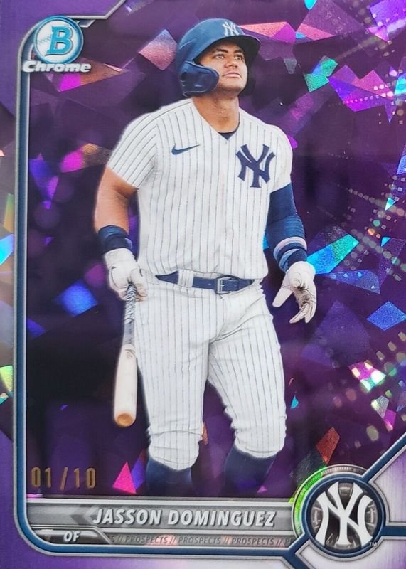 Best Prices Available For Sale of Jasson Dominguez 2022 Bowman Draft Sapphire Edition #BDC-75 Chrome - Purple /10