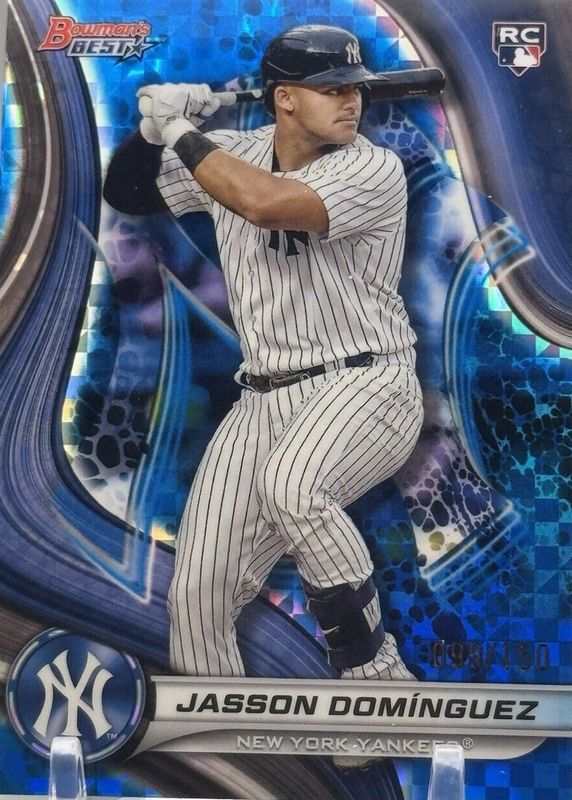 This card is 1 of 33 Jasson Dominguez's card variations in the 2024 Bowman's Best set being tracked by Sports Card Investor, including Base, Refractor, Wave Refractor, Mini-Diamond Refractor /299, and Purple Mojo Refractor /250.