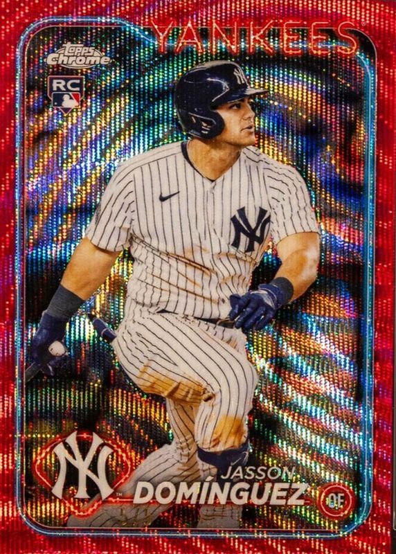 Auctions Ending Soon for Jasson Dominguez 2024 Topps Chrome #89 Red Wave Refractor /5 Rookie RAW