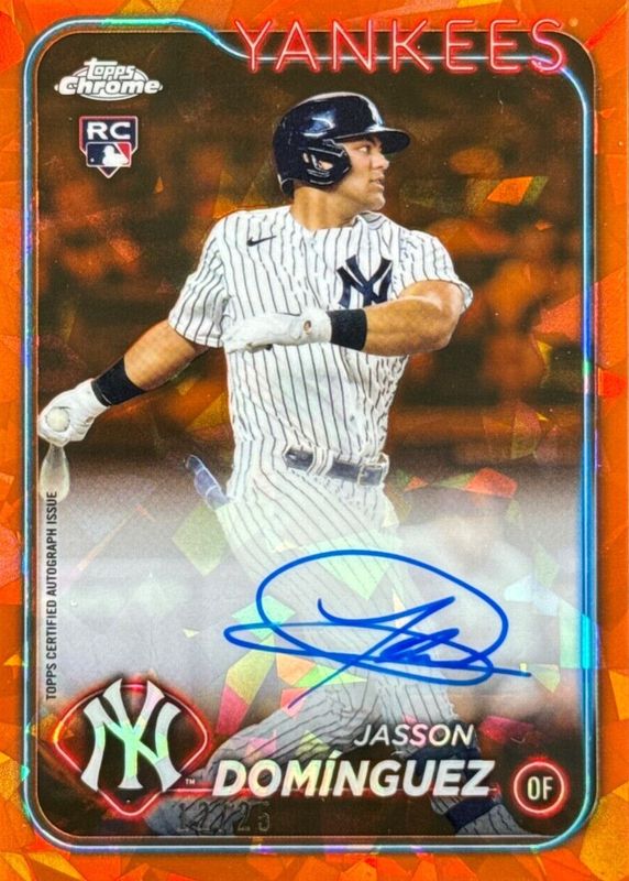 Auctions Ending Soon for Jasson Dominguez 2024 Topps Chrome Update Sapphire Edition #USA-JD Autographs - Orange /25 Rookie RAW