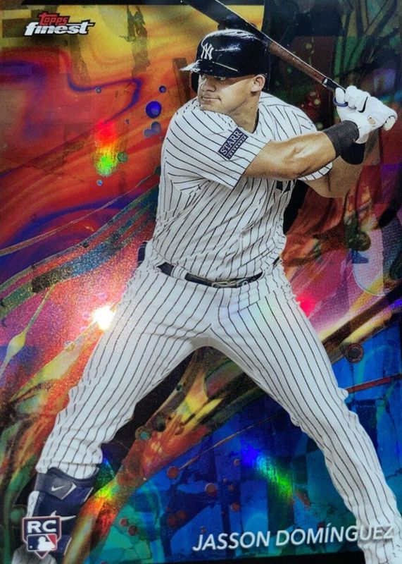 Best Prices Available For Sale of Jasson Dominguez 2024 Topps Finest #83 Common - Oil Spill Refractor /(SSP)