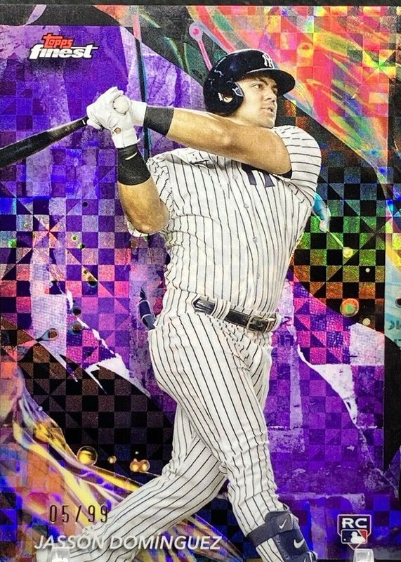 Best Prices Available For Sale of Jasson Dominguez 2024 Topps Finest #168 Uncommon - Purple Checkerboard Refractor /99