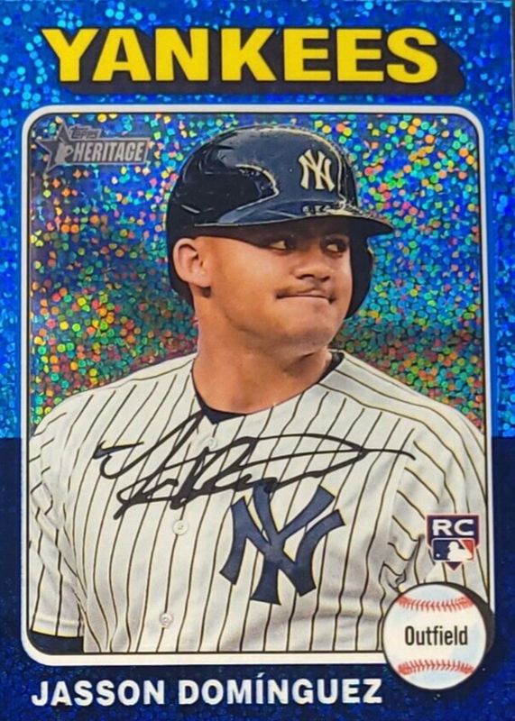 Best Prices Available For Sale of Jasson Dominguez 2024 Topps Heritage #399 Chrome - Blue Sparkle Refractor