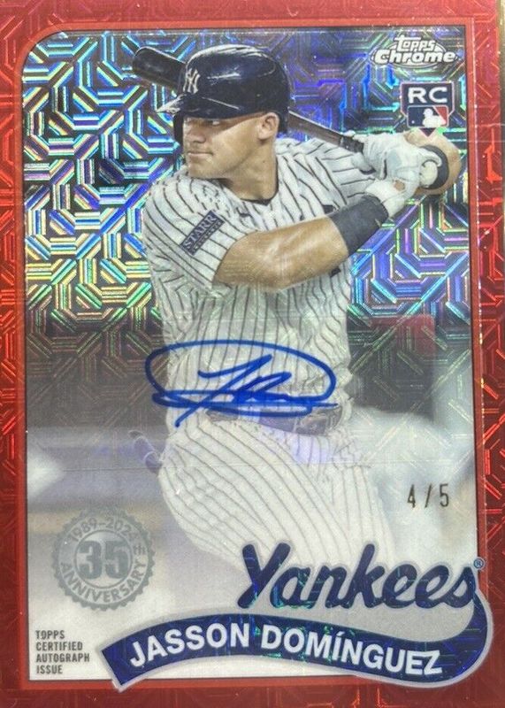 Recent Sales of Jasson Dominguez 2024 Topps Silver Pack #2T89C-69 1989 Chrome Promo Autographs - Red Refractor (Series 2) /5 Rookie Raw