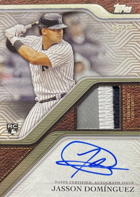 Jasson Dominguez 2024 Topps Update #TRAPU-JD Topps Reverence Autograph Patch /10 Rookie PSA 9 Price Guide