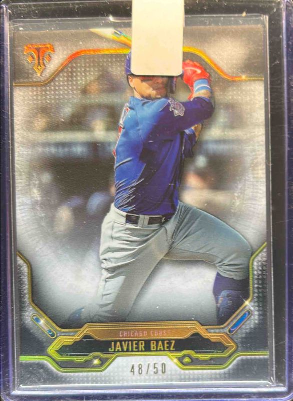The Javier Baez 2020 Topps Triple Threads #20 Onyx /50 card is 1 of 53 Javier Baez's card variations in the 2020 Topps Triple Threads set being tracked by Sports Card Investor, including Base, Amethyst /299, Emerald /259, Amber /199, and Gold /99.