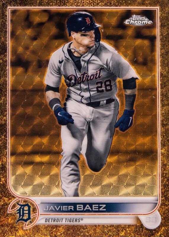 This card is 1 of 5 Javier Baez's card variations in the 2022 Topps Gilded Collection set being tracked by Sports Card Investor, including Base /99, Mini-Diamond Gold Etch Refractor /50, RayWave Gold Etch Refractor /25, and Lava Gold Etch Refractor /10.
