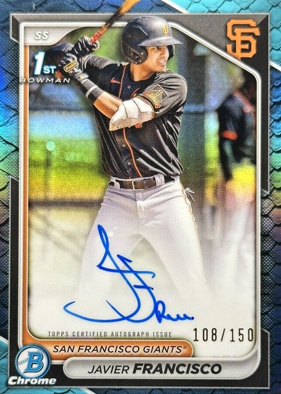 2024 Topps 1st Bowman Chrome JAVIER FRANCISCO /150 Blue Refractor Auto Giants