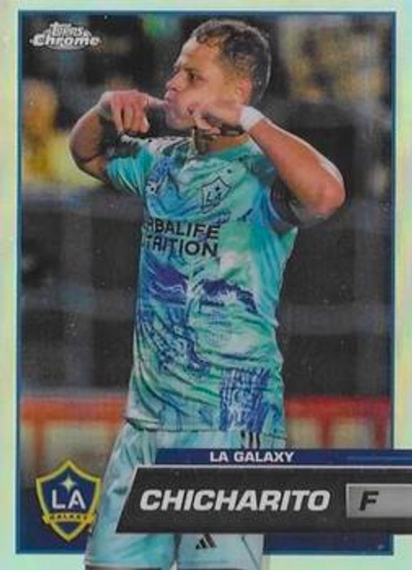 The Javier Hernandez 2023 Topps Chrome MLS #77b Base card is 1 of 31 Javier Hernandez's card variations in the 2023 Topps Chrome MLS set being tracked by Sports Card Investor, including Base, Pink X-Fractor, Refractor, Speckle Refractor, and Blue Mini-Diamond Refractor /199.