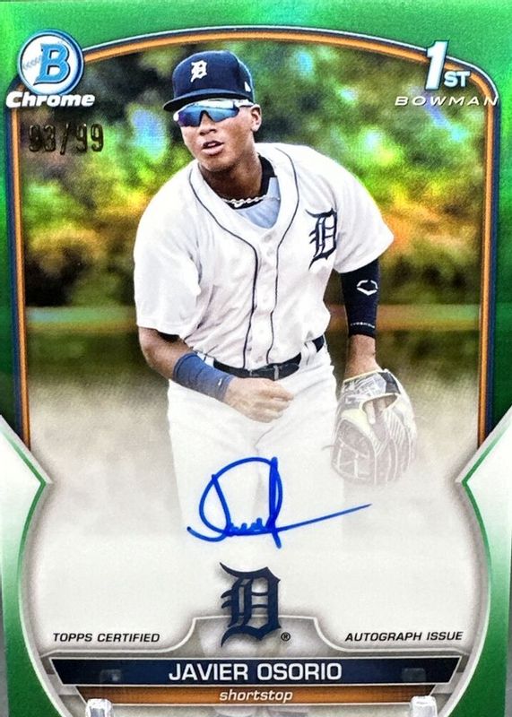 2023 Bowman Chrome Javier Osorio 1st Bowman Green Refractor Auto /99 Tigers