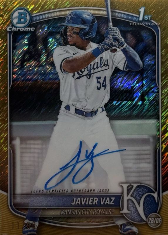 2025 Bowman Chrome Javier Vaz Gold Shimmer Auto /50 RC Royals 1st Bowman On-Card