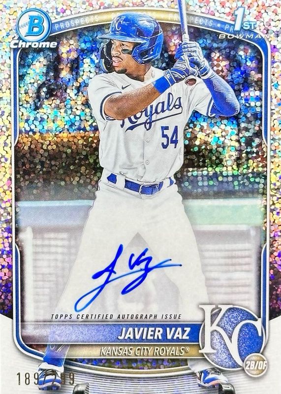 2025 Bowman Javier Vaz Chrome Auto Speckle Refractor 1st #4/299 Royals