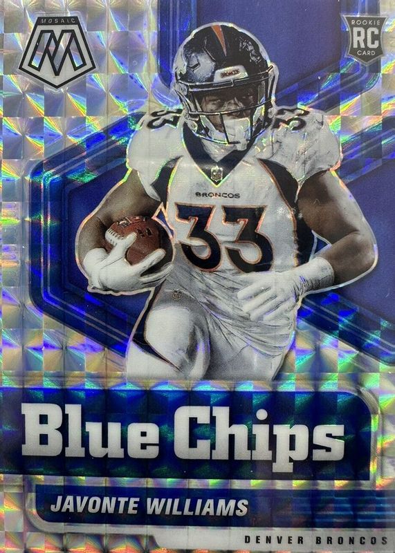2021 Mosaic Blue Chips Silver Mosaic Prizm JAVONTE WILLIAMS RC #14 BRONCOS
