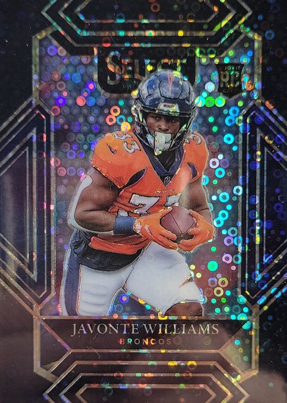 This card is 1 of 150 Javonte Williams' card variations in the 2021 Select set being tracked by Sports Card Investor, including Club Level, Concourse, Field Level, Premier Level, and Club Level Black & Gold Die-Cut.