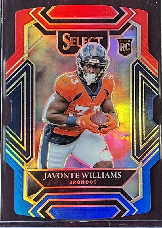 2021 Panini Select Javonte Williams Die-Cut Red Blue Prizm #257 Rookie RC Denver