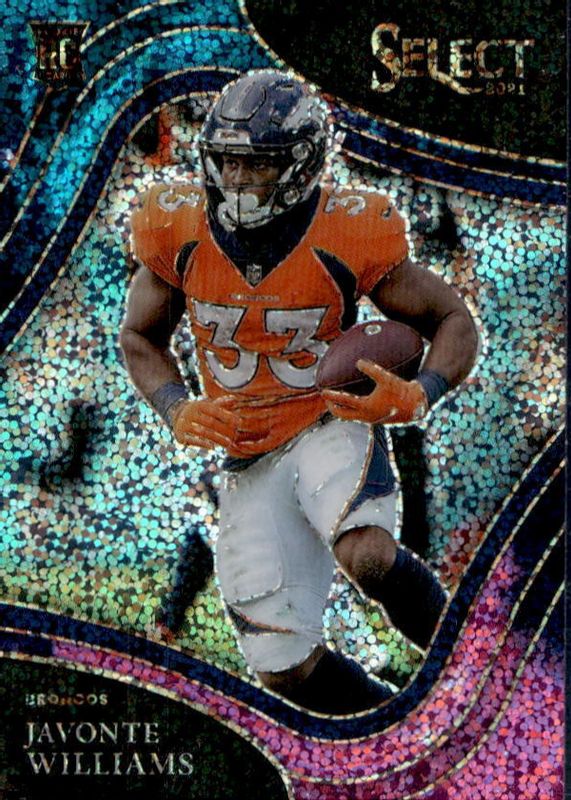 This card is 1 of 150 Javonte Williams' card variations in the 2021 Select set being tracked by Sports Card Investor, including Club Level, Concourse, Field Level, Premier Level, and Club Level Black & Gold Die-Cut.