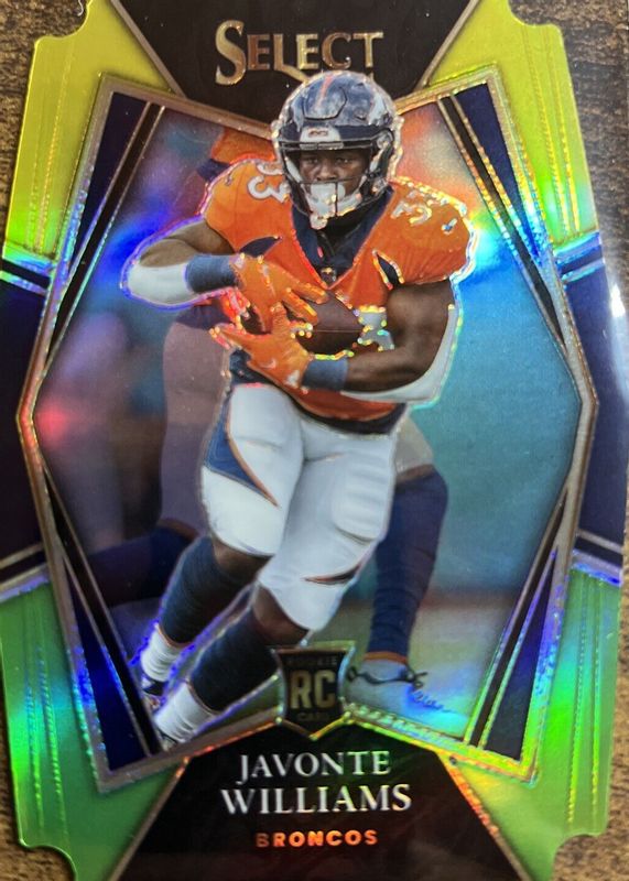 2021 Select - JAVONTE WILLIAMS #157 Yellow Green Die-Cut Prizm Rookie RC Broncos