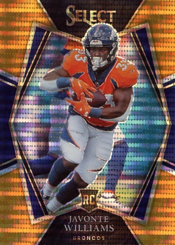 2021 Panini Select #157 Javonte Williams Orange Pulsar Prizm /7 Rookie