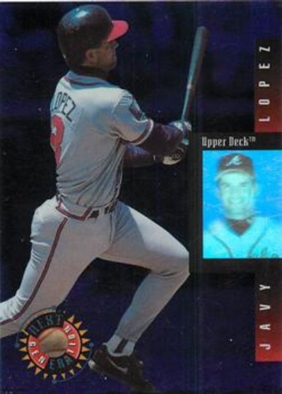 The Javy Lopez 1994 Upper Deck #11 Next Generation card is 1 of 5 Javy Lopez's card variations in the 1994 Upper Deck set being tracked by Sports Card Investor, including Base, Electric Diamond, Next Generation - Electric Diamond, and SP Previews.