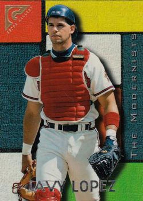 The Javy Lopez 1996 Topps Gallery #125 Base card is 1 of 2 Javy Lopez's card variations in the 1996 Topps Gallery set being tracked by Sports Card Investor, including Player's Private Issue /999.