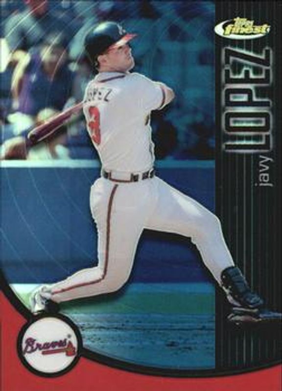The Javy Lopez 2001 Topps Finest #103 Refractors /499 card is 1 of 2 Javy Lopez's card variations in the 2001 Topps Finest set being tracked by Sports Card Investor, including Base /999.