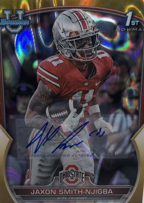 Auctions Ending Soon for Jaxon Smith-Njigba 2022 Bowman Chrome University #78 Prospect Auto - Gold Lava Refractor /50 (1st) RAW