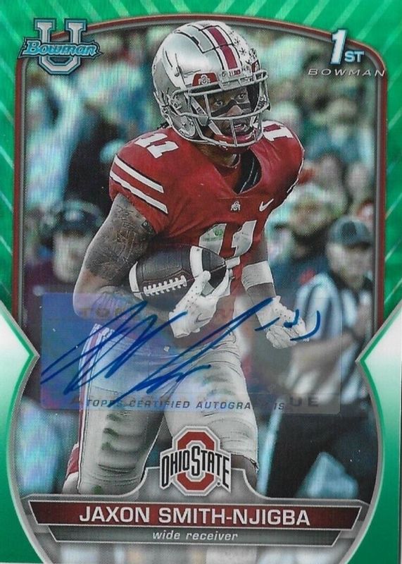 Best Prices Available For Sale of Jaxon Smith-Njigba 2022 Bowman Chrome University #78 Prospect Auto - Green Refractor /99 (1st)