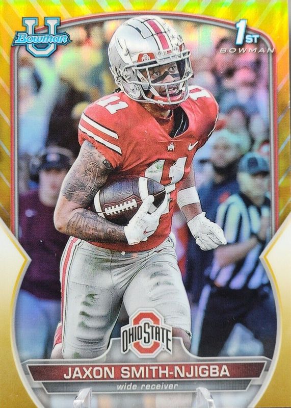 The Jaxon Smith-Njigba 2022 Bowman Chrome University #78 Prospects - Gold Refractor /50 (1st) card in Raw condition has not changed in price in the last 30 days and was last sold for $12.50 .