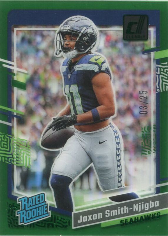 2023 JAXON SMITH-NJIGBA /25 Green Donruss Clearly Football Rated Rookie #67 Sea