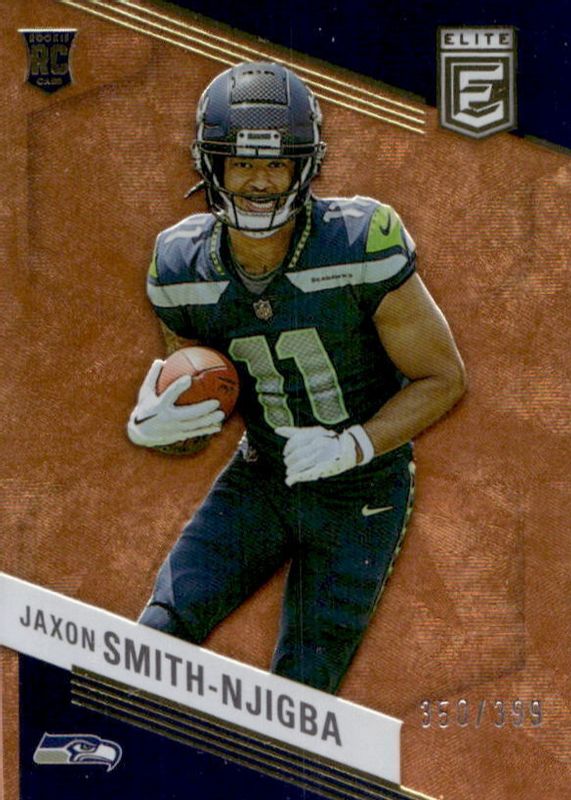 The Jaxon Smith-Njigba 2023 Elite #151 Orange /399 Rookie card in Raw condition has moved down -$3.96 (-36.2%) in the last 30 days and was last sold for $6.99 .