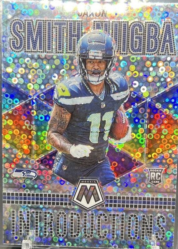 The Jaxon Smith-Njigba 2023 Mosaic #I-7 Introductions - No Huddle Rookie card in Raw condition has moved down -$0.49 (-6.1%) in the last 30 days and was last sold for $7.50 .