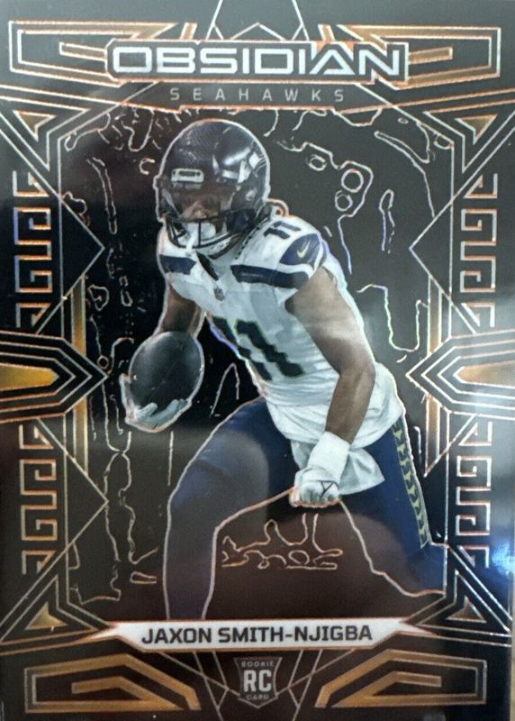 The Jaxon Smith-Njigba 2023 Obsidian #186 Electric Etch Orange /49 Rookie card in Raw condition has not changed in price in the last 30 days and was last sold for $55.00 .