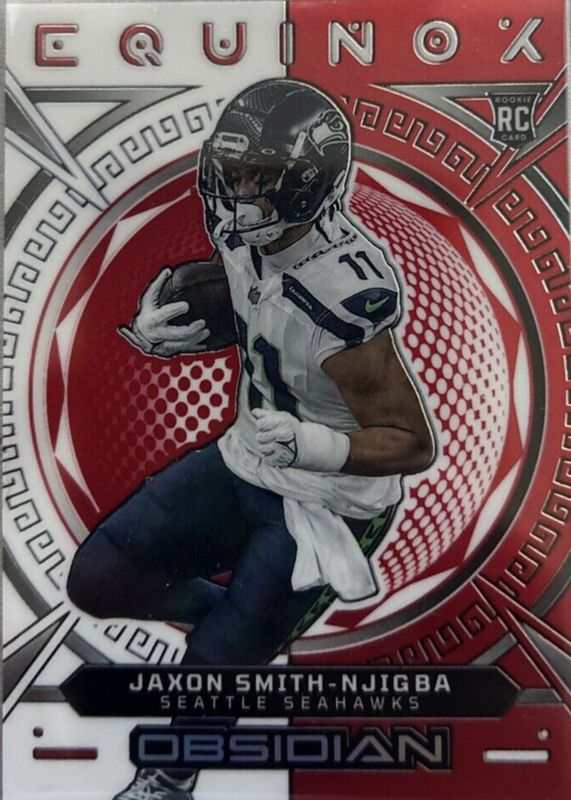 The Jaxon Smith-Njigba 2023 Obsidian #22 Equinox - Electric Etch Red Flood Rookie card in Raw condition has not changed in price in the last 30 days and was last sold for $25.00 .