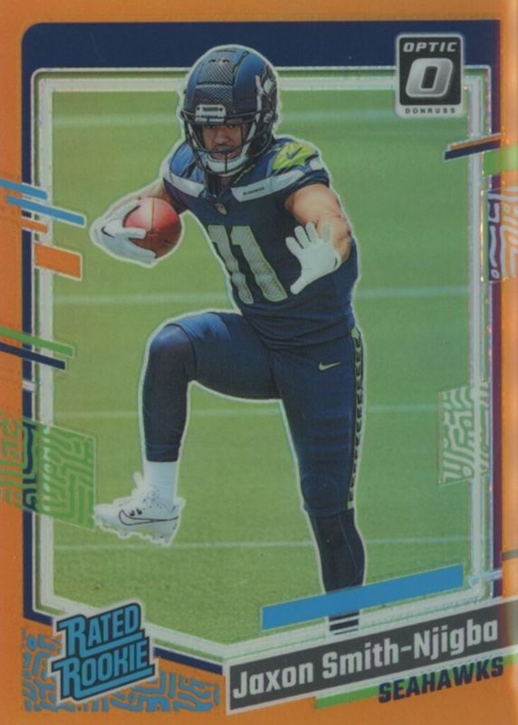 The Jaxon Smith-Njigba 2023 Optic #293 Orange /249 Rookie card in Raw condition has moved up $0.01 (+0.0%) in the last 30 days and was last sold for $30.00 .